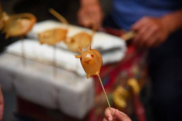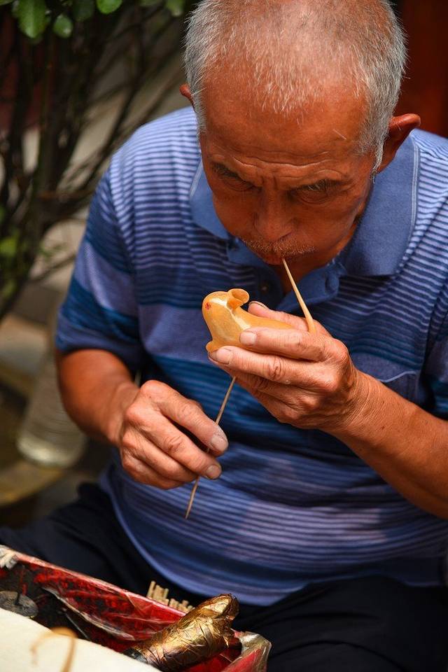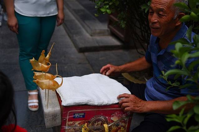 走着走着,看到一个大爸在吹糖人,哇,这个手艺现在在北京应该都没有了,10块钱一个,好怀念小时候经常可以看到吹糖人的,这门手艺太珍贵了不是嘛