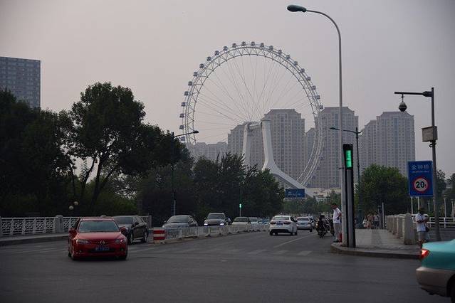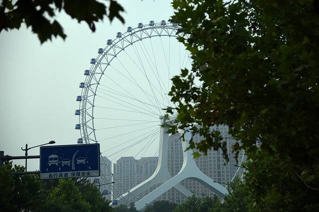 走出酒店,我们到是没有沿着海河走,为了去超市我们走进了对面的小巷子,沿着巷子走向摩天轮,一路就看着地标摩天轮走呢