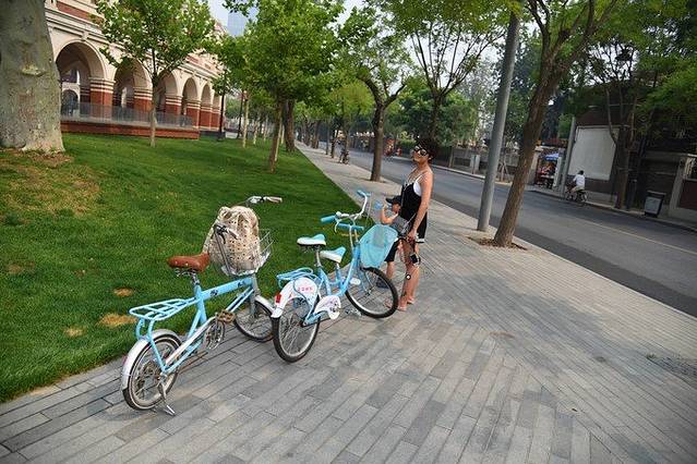 说话的功夫我们就到了五大道的中心广场,一下车,就有人拉着我们说租自行车吗?不限时,随便玩20块钱,还有带小孩子的自行车,不要坐马车,马车不停,就转一圈,不分大小,80一个人,不如租个自行车,木儿爸可是听高兴了,他可一直想骑着自行车带小木儿一块玩,想了想,行吧,那就租个自行车吧,于是,根着车贩子去了她的老窝 到了好的老窝,刚想拍个照,OMG,我的像机落车上了,我这个急呀!!!!!!!