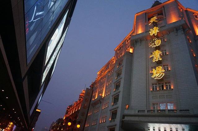 我们从摩天轮走到酒店,过了金刚桥就是我们的酒店,大概也就400-500米的样子,天色渐黑了,该吃晚饭了,来之前,我是问过天津本地的人,在哪里可以吃到小海鲜的,因为我们没去塘沽,所以就想吃吃小海鲜,人家推荐天津的北李妈妈菜,在恒隆广场,其实就是劝业场这里开的一个大商场,果断打车过来,9块~起步价就到了
