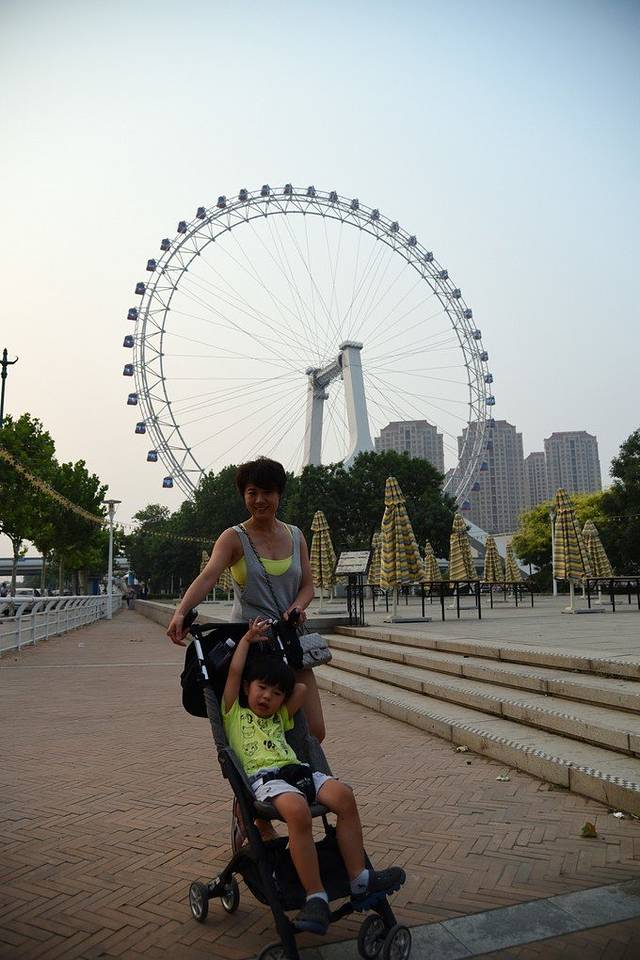 小木儿睡醒后,推上婴儿车,直接奔向天津之眼,摩天轮,依旧控制不了乱跑的木总,回头看看我们的酒店全景