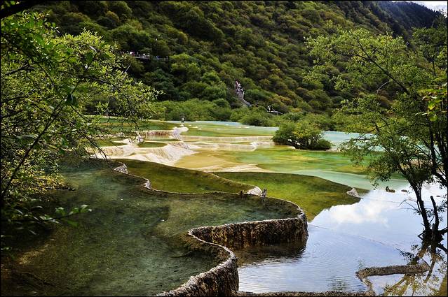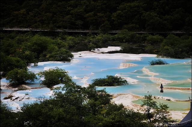 和八年前相比,黄龙景区的山水变化不大,最直观感觉是八年前人行栈道伸到了五彩池的池边,游客可近距离触水,近距离拍照,现在不允许了,隔得很远,绕一大圈,远观,不可近触。