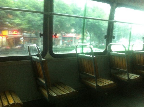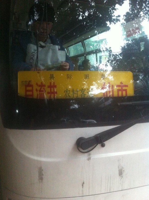 客运站到我住的旅店,坐公交车很方便,出门右转37路直达。客运站门前这条路,叫做丹桂大街,真是好听的名字,自贡有许多桂花树,可惜此时已过了桂子飘香的秋节。上了37路,看到许多年不见的老式木条椅子,觉得真是亲切的风情,车子很快驶过看起来高端洋气的街区,几个转弯,就到了灰色调的典型四川式老旧的道路,经年的房屋,起伏的山路,桥与滂沱的河。这才是四川,这才是那种惬意和缓慢。