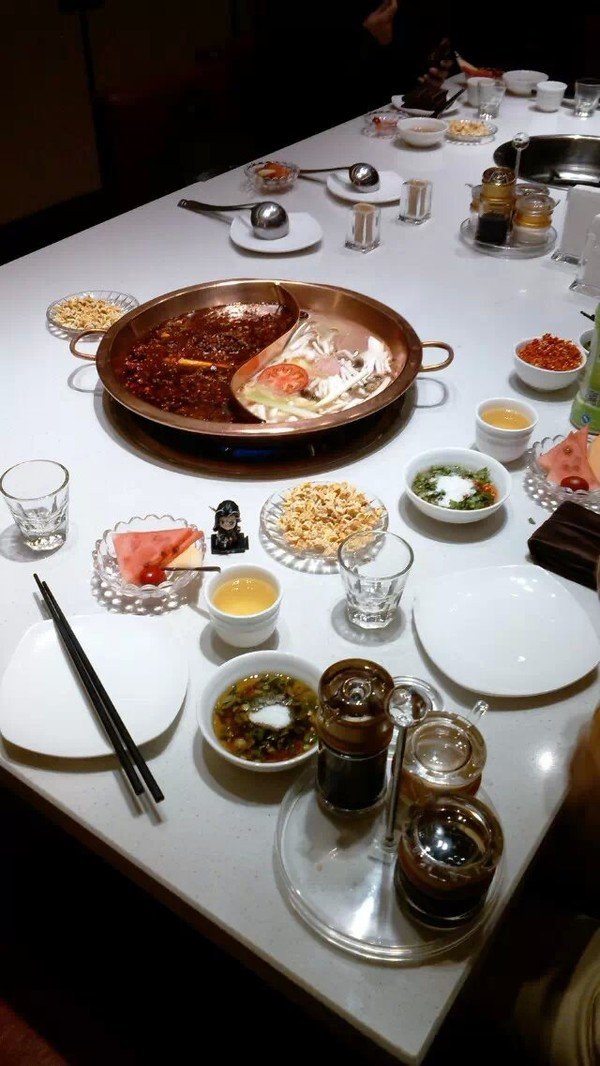 仙市归来,华灯初上。农村车把我们俩农村人拉回火车站,久久带我坐上公交去马吃水,俺们不是马,也不是喝凉水去的;马吃水是个地名,我们去吃好吃的。富丽堂皇的火锅店里,华丽丽的大火锅,还有各种包间。好吃啊,小料还是蘸水要得!巴蜀一带似乎是叫油碟,在云南的时候我们叫蘸水。总之比麻酱够味。