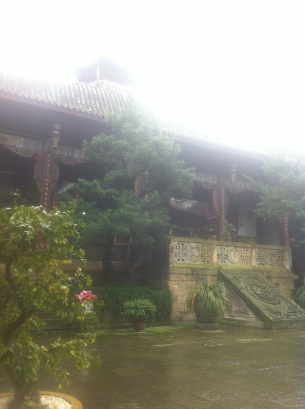 吃到撑的站不起来,我去前台拿充电的手机,久久去洗手间;结果,果然又是抢单,大家都是偷偷结账去的……下了一天的小雨这会还在下,玩了一天,吃喝一天,筵席终了,人却不舍得散去。于是又找了茶楼喝茶,四川的茶楼是文化特色,去茶楼的人却不是为了喝茶,而是打牌玩麻将。这两样我们两个都不擅长也不爱好;我们去茶楼也不是为了喝茶,是为了多相聚片刻。