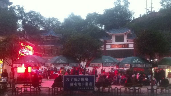 出门时因为计划要先爬山,所以穿了好走路的匡威。这会要会友了,而且还要过生日,怎么能穿着脏兮兮的鞋子呢!所以下楼坐车去东方广场,许多公交车都到,只有两站路,大概十分钟就到了。下车的地方斜对面,就是彩灯公园,过年时候这里会有全国闻名的灯会;平时就是个半山的公园,这样美丽的小山上的公园,自贡还有好几个,不必说公园,一路上都是风景。