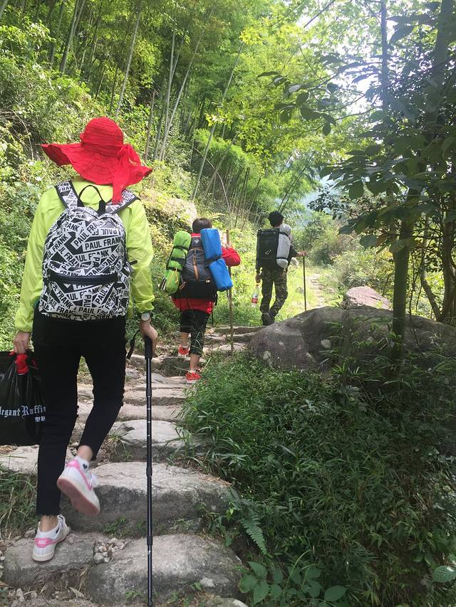 我们开车到龙山村的龙山客栈 老板人也是万分亲切 停车位一天10块钱 买了两根登上棍两块钱一根 (登山杖一定要带 没有可以买拐棍 可以减轻负担)我们山上前老板娘很专业的给我们拍照 拍小视频 是不是很帅气