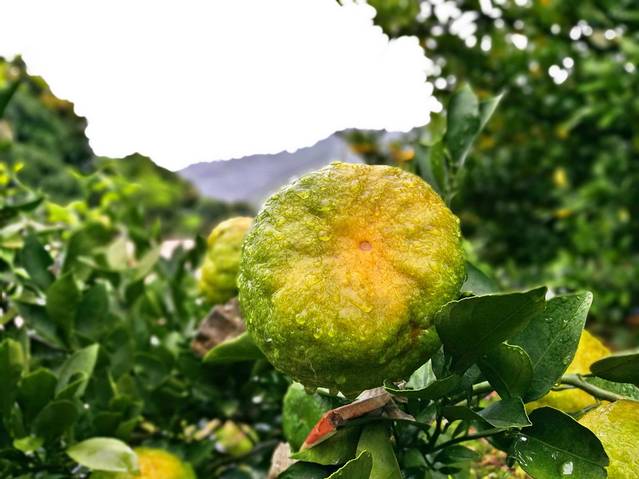 20日上午, 离开通海,来到华宁,看见公路两边及山间种了近十万亩柑橘,品种多样,个头挺大,酸甜润爽,确实好吃。