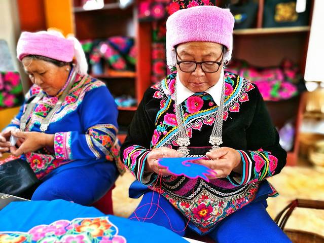 峨山县的摆衣寨是云南十大刺绣名村。这是一个被青山包围的山区彝族村寨,干净、整洁、清秀。碰巧,县残联在该村办刺绣培训班,培训刺绣新手。我们有幸一睹摆衣寨刺绣巧手的精美绣技和绣品。不是亲眼见,我真不敢相信一年四季下田劳作的彝族妇女竟有这样一双巧手,能绣出这样美的绣品。随着摆衣寨刺绣名声逐长,特别是被省授与云南十大刺绣名村后,来该村参观学习、观光旅游、采购绣品的人也多起来,原来自绣自用的绣品现在已走出大山,飞向四面八方,成了彝族妇女创收致...
