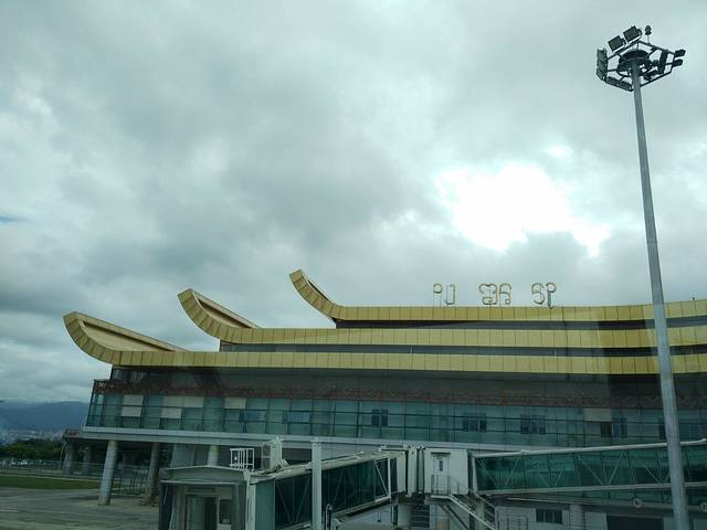 嘎洒机场的风格已经能够体现出傣族的特色了,尖尖的屋顶,还有金孔雀。