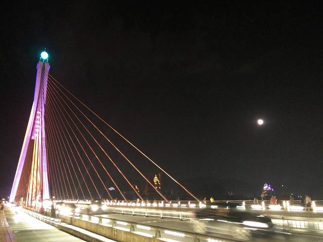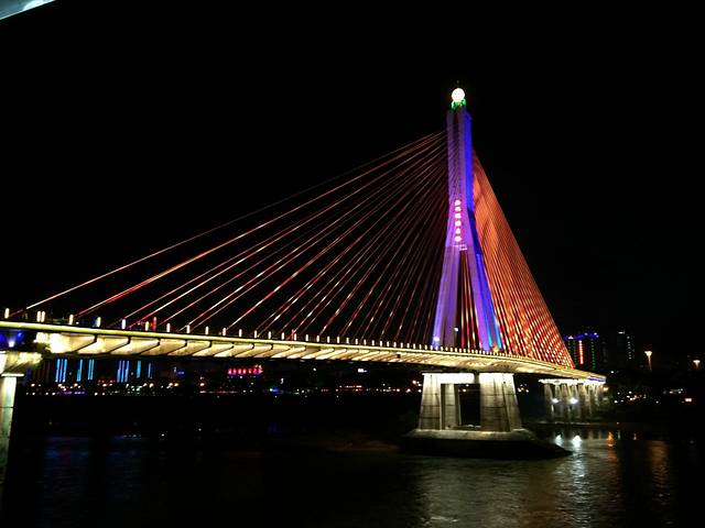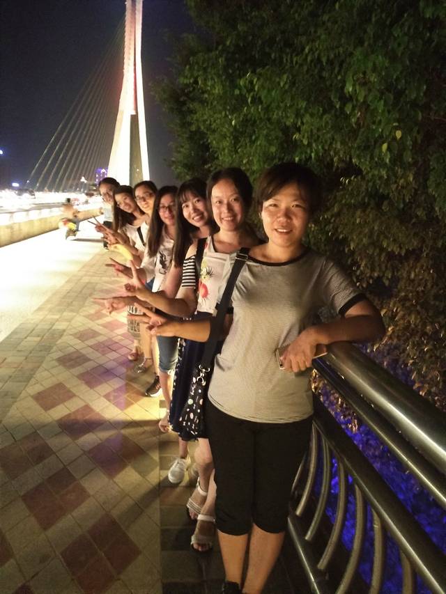 用过晚餐,几个女生跟着同事去西双版纳大桥散步,江风夹杂着腥味阵阵吹来。桥下还有很多人在夜钓,澜沧江西岸是酒吧一条街,灯光五彩斑斓。
