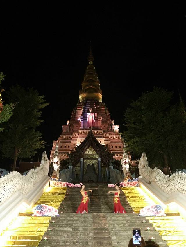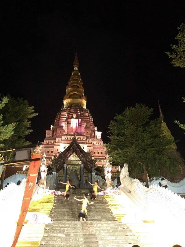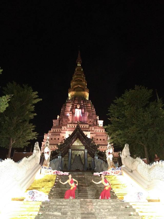 转到大金塔的背面,意外的发现大金塔上还有民族舞蹈表演呢。