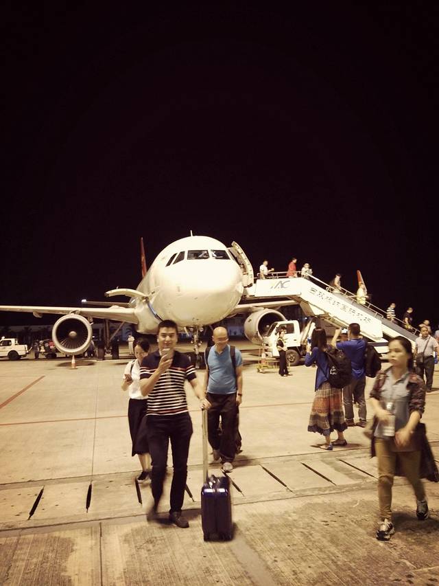 17:15的飞机,到西双版纳已经八点多了,飞机舱门一打开,一股清新湿润的空气扑面而来,有点闷热。