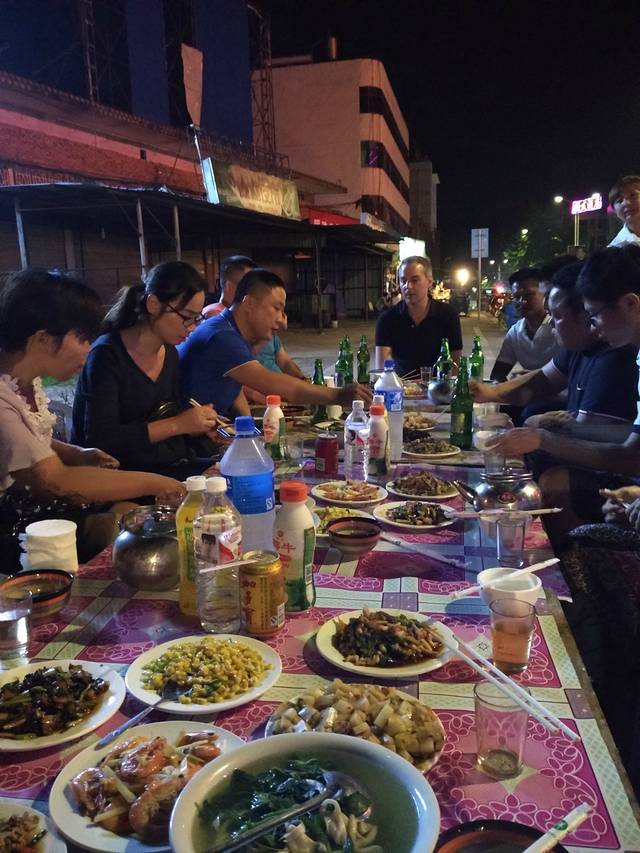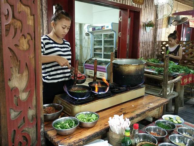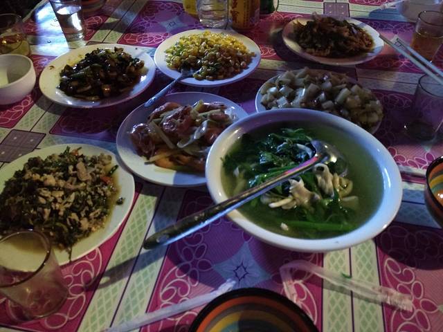 晚上在告庄的爱伲山庄吃饭,离我们住的地方不远,步行过去就可以。