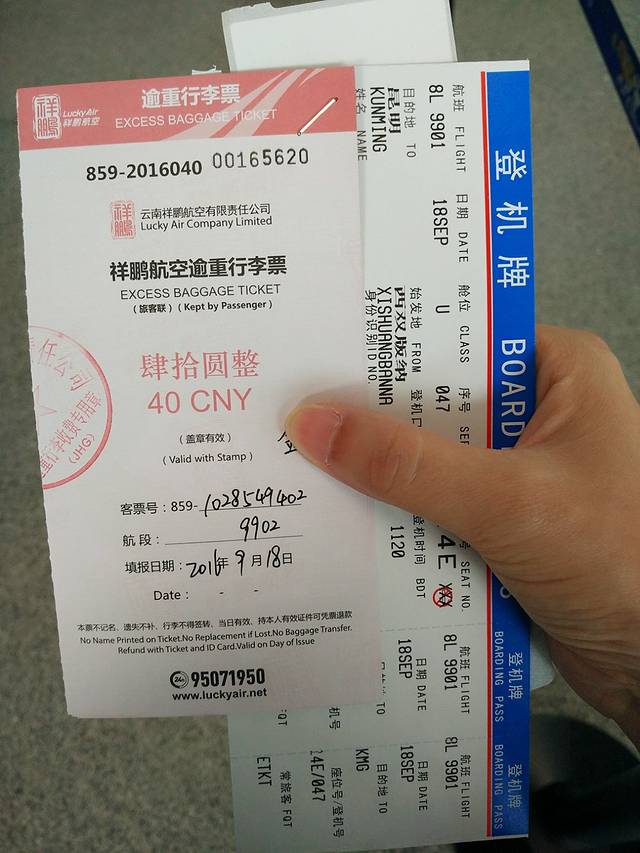 从西双版纳飞昆明订的是云南祥鹏航空,这家航空公司从2016年7月开始对订购的客票实行新政策:公务舱头等舱可享有30KG;7折以上票仅可享有10KG免费行李托运额,7折以下的为0,需付费购买。(分别是5KG 40元,10KG 80元,15KG 120元,20KG 160元).