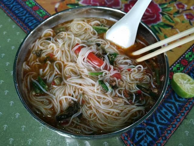 早饭只有面条和米线,酒店门口过马路就是。面条味道还不错。