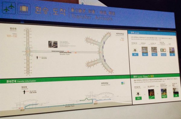 到了仁川機場,都沒有看到過攻略說要做地鐵去另一頭辦理入境,行李也是那邊出關拿。我們走到地鐵處以為走錯路,其他第一次來韓的遊客也是摸不著頭腦,因為看坐地鐵的人有些拿著行李。後來又上樓抓了個大叔雞同鴨講才知道沒走錯。就像一個發射基站,飛停都去那邊