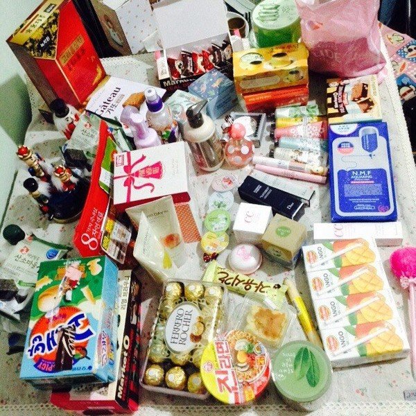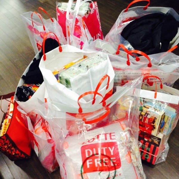 辦理登機說一人只能一個箱子託運 於是把行李箱打開重裝,一些手拿上飛機。在去那個基站前應該先退稅的,我們錯過了直接去的基站,白敲章了。樂天網買的那些在基站單獨開了個臨時取貨點,專為我們這架飛機取貨,果然上這家飛機的都是女生,大包小包一堆,也是蠻拼的!