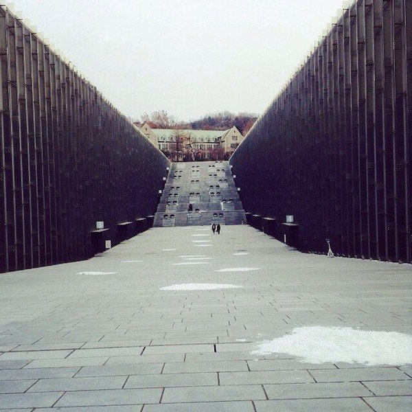 梨大最著名的建築ECC下沈式階梯教室和圖書館,兩邊都是玻璃帷幕,由義大利設計師設計,隨階梯而下教室也隨著地勢而逐漸淹沒地下。