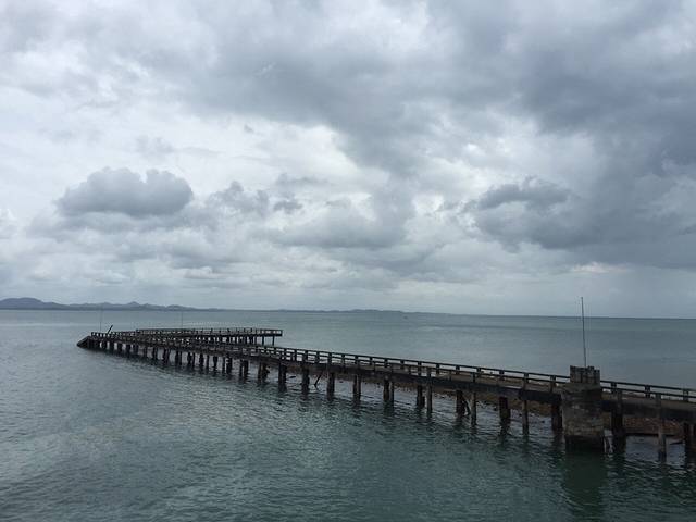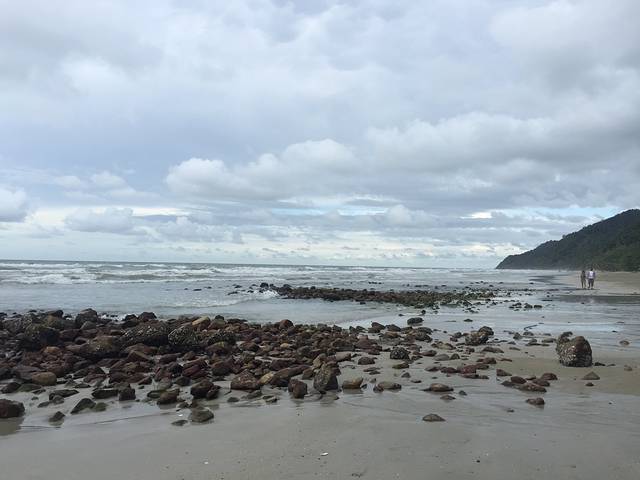 刚下过雨,天灰蒙蒙的,不过海水很蓝。比酒店前面的沙滩大,不过大同小异。