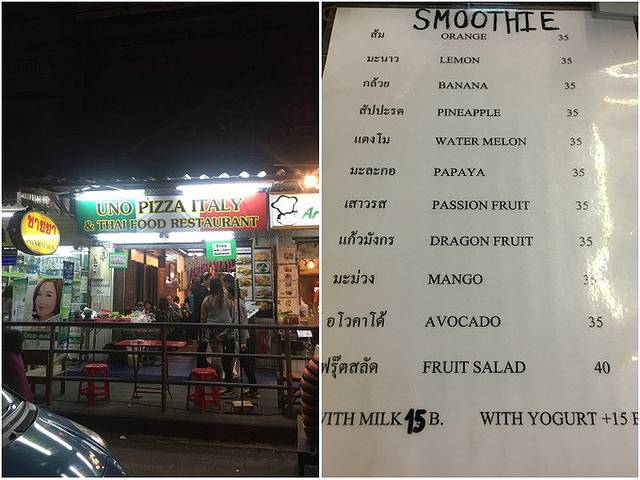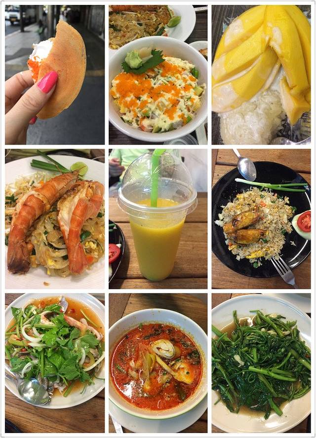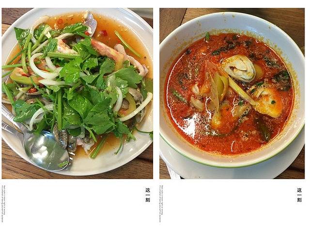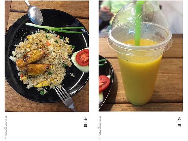 可是在去往塔佩门夜市的路上,还未到夜市,经过几家餐馆,我们就凭眼缘选了一家泰式餐厅进去了,有时候就是这样,计划没有变化快,看了菜单点了几样,等到菜上桌,很惊喜啊,分量十足,而且太适合我们的胃口了。海鲜炒饭的分量很足,完全够我们两个人吃,尤其是鲜榨芒果,实实在在的芒果榨的,好大一杯,折人民币7元左右,不得不赞叹一下,简直是业界良心啊!最主要的是口感好纯,里面加了一点椰奶,真的很好喝!简直是美死我们了,以至于后来去到哪里基本都点鲜榨芒果了,简直喝不腻的节奏!什锦海鲜也是我们的菜,酸酸甜甜很开胃。来到这个国度,冬荫功汤成了必点,会喝的人觉得很美味,喝不来的人觉得是肥皂水!不过我们俩很爱这一顿,好满足