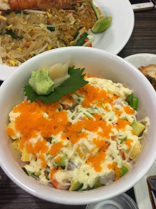 在王权免税店买了些护肤品,考虑到下午要飞去清迈,不想耗费体力去找吃的,就在王权里面解决午饭问题!虽然是一家日式料理,但是居然有卖芒果饭的,来到这个国度当然要感受一下芒果饭啦!芒果香甜,泰米有点糯,芒果配上泰国米饭很配啊!只是在这里吃其实是比较偏贵的,依稀记得是180B。后来在清迈用三分之一价格一样吃到好吃的芒果饭!这家日料食材很新鲜,让我们大满足。