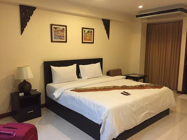 对于这家酒店,是此行唯一一家不满意的,因为想到第二天的早班机去苏梅岛,所以选了离机场较近的一家酒店,可是完全被图片误导。本来以为离机场很近的,其实一点也不近,原计划打的过去,行李一放,再坐车去市区,可是哪里知道这个酒店已经位于郊区了,打的好远啊!至少20多分钟!还不如从机场坐地铁到市区方便!之前有人说这家酒店是免费接送机场的,其实根本没有,送机的费用还不便宜,最最最主要的是环境不好,酒店本身比较老旧,设施就不说了!晚上酒店外面是个农贸集市,很嘈杂,要不是因为早班机,根本不会选这里!十分不推荐!因为这家酒店的地理位置,完全耽误原本的行程,离市区太远,也没来得及去大皇宫,四面佛!