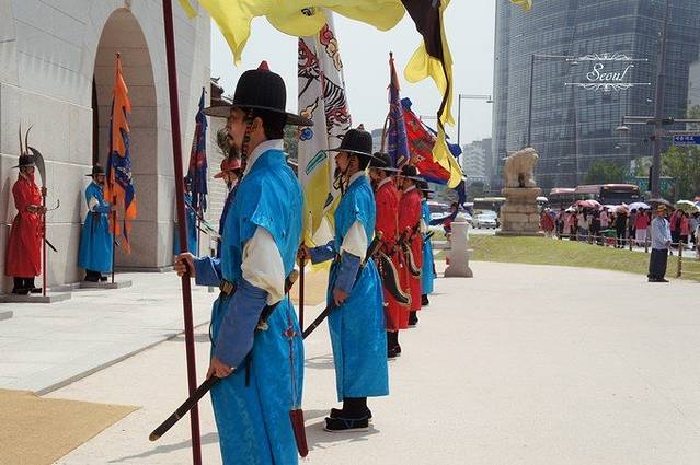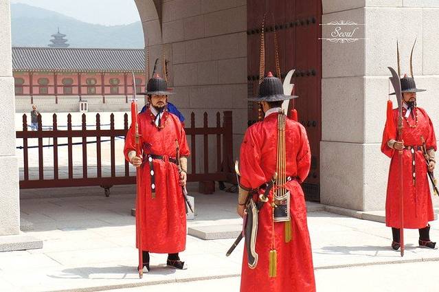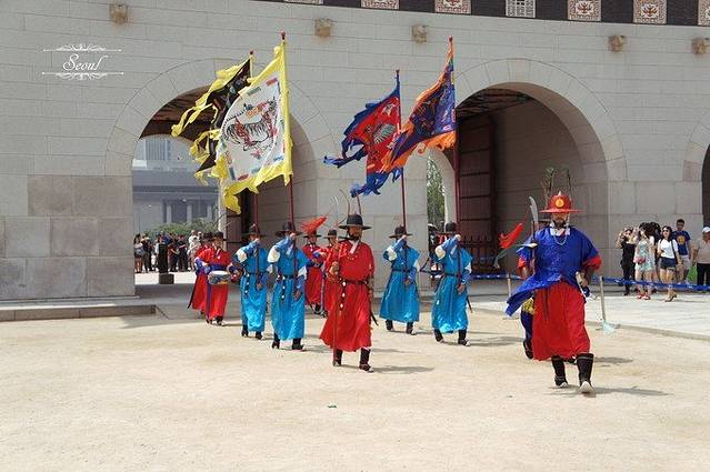 在里面转着想要找地方租韩服的时候,突然赶上了光华门守卫的交接班仪式。应该是11点的时候吧。