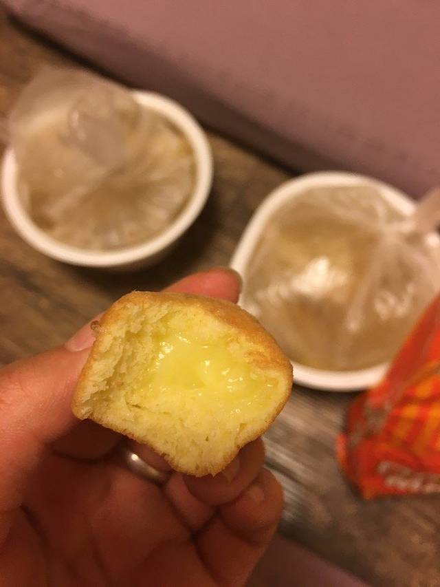 鲷鱼烧里面包了黄色的心,很好吃啊。香喷喷!!