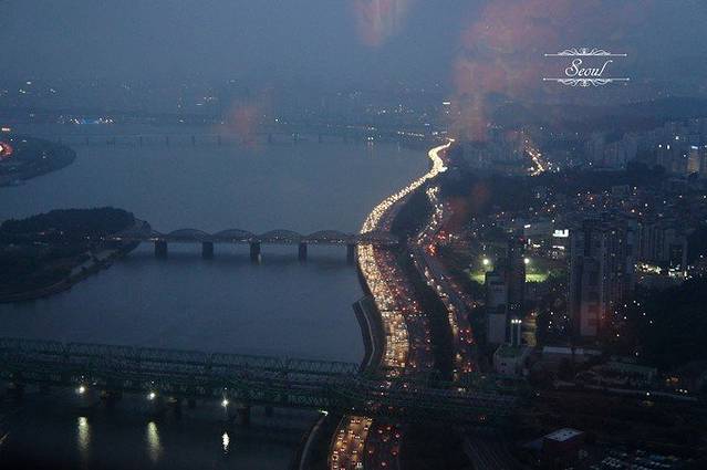 从大厦看下去,可以看到汉江。汉江把首尔一分为二。