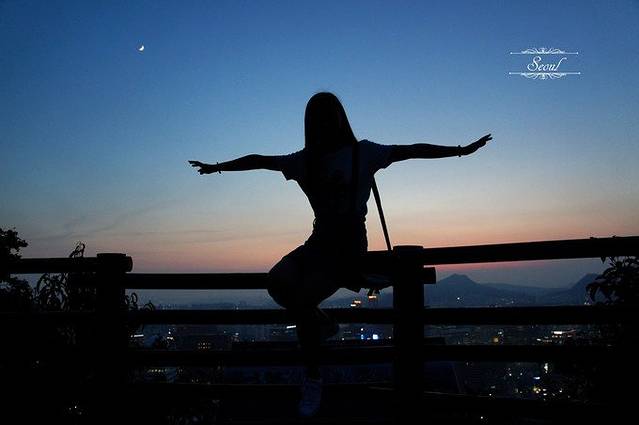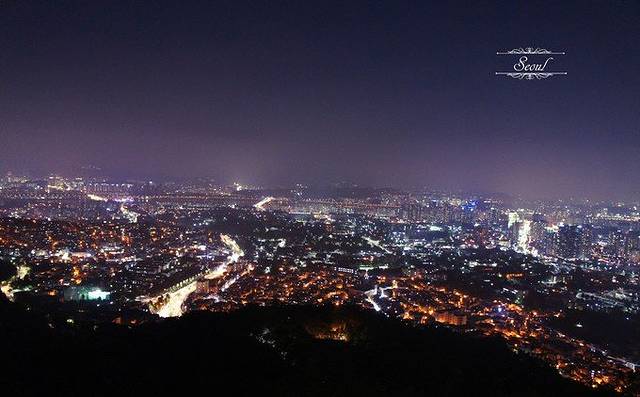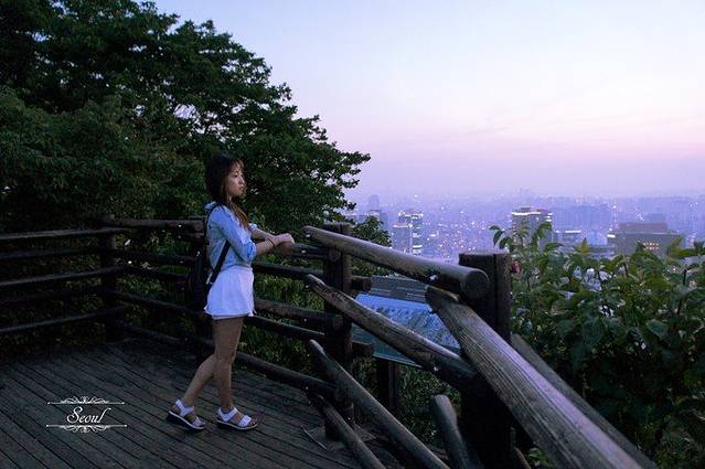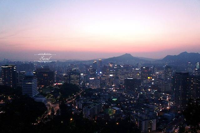这是在半山腰上的观景台,可以看到首尔傍晚的景色,很美很美。