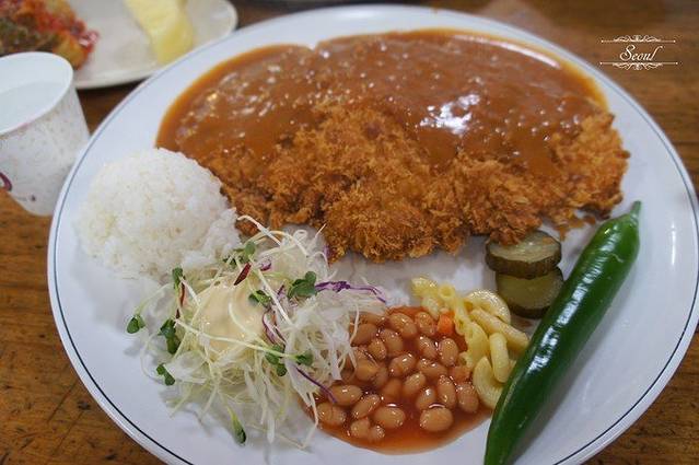 逛到快两点,又赶紧找地方觅食。这次的目标瞄准的是一家猪排店。外面有runningman当时HAHA和GARY来过的广告牌。