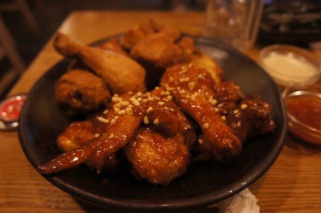 在弘大附近找的一家炸鸡店,名字记不太清了,味道也还是不错。