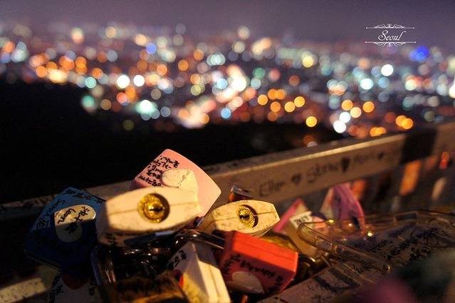 看到了大名鼎鼎的各种锁墙。好多好多锁挂在上面,好多好多心愿都写在上面,日文,韩文,英文,中文,不管哪种语言,大家许下心愿的那颗心都一样,都希望爱的人幸福,念的人平安。