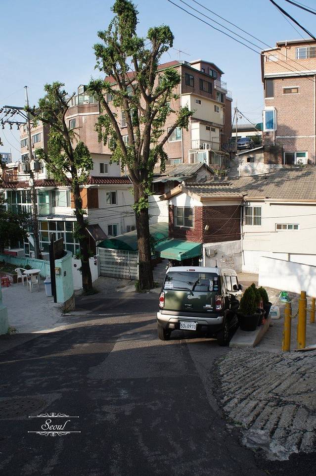 不过这里的好处是,离首尔塔和南山很近,离明洞购物中心也近,都是步行就可以。但是因为民宿在山上(又提到了),要上一个很长很长的坡,虽然之前我们在别人游记就看到说这家民宿前面是大坡,可没想到这个坡这么长这么陡,就当每天吃多了回去的路上爬坡减肥吧。