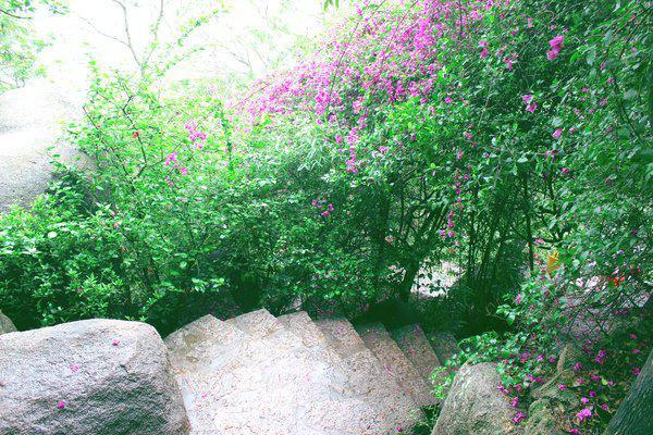 台阶湿了,上山难,下山容易的都,此刻,大家的心情也都很愉快,似乎卸掉了一身的疲惫,又变的精神了起来,尽管天气还是依然的闷热,尽管时而还在下着小雨。