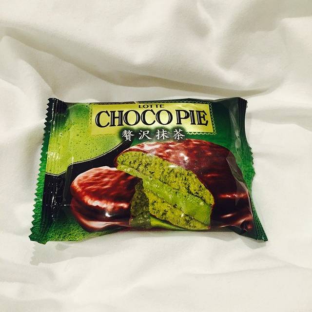 在711买的抹茶巧克力,里面有夹心,深色的夹果冻,浅色的夹饼干。