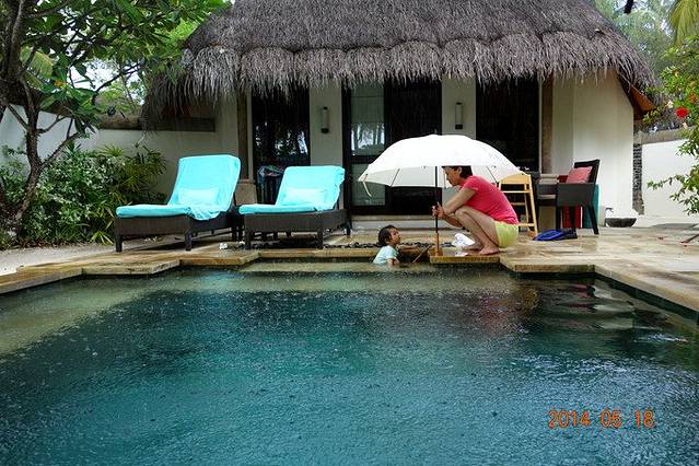 一开始就听说了四季库达呼拉度假酒店(Four Seasons Resort Maldives at Kuda Huraa)的服务深入人心,从在接待室开始,就慢慢体会到了。这一上岛,小黑看到我抱着睡着的孩子,基本没有考虑,就直接送我们去房间了,然后自己拿我们的护照,银行卡去办入住手续,办好后给我们送到房间来,完全不用我们操心。说到这里,入住的时候需要提供visa信用卡,做预授权1000美金。把Aimee丢床上就开始欣赏欣赏房间了~