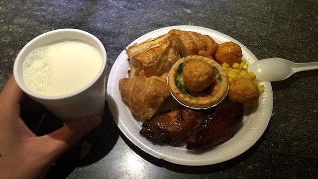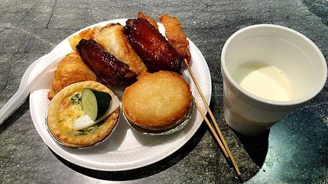 今天的早餐:半个牛角包、一个蛋挞、一个馅饼、两个烤鸡翅、两串骨肉相连,一杯牛奶。 还有很多餐后糕点可供选择,我又不热衷于甜食,所以入住一周,几乎没吃两口蛋糕。