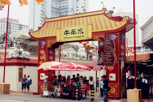 China town 唐人街是新加坡华人聚集的地方,在新加坡,中国城被称为"牛车水",因为原本的居民都以牛车拉水来清扫,这个典故网上有很多诠释。