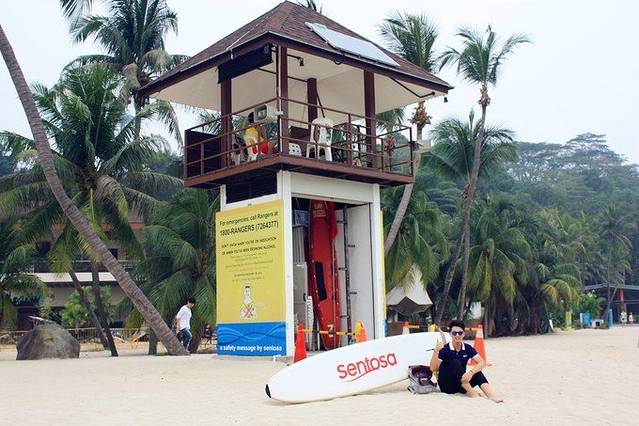 吃完饭逛了一圈,已是下午三点了。 出了环球影城,手上盖了几个印章,搭乘捷运前往圣淘沙海滩...