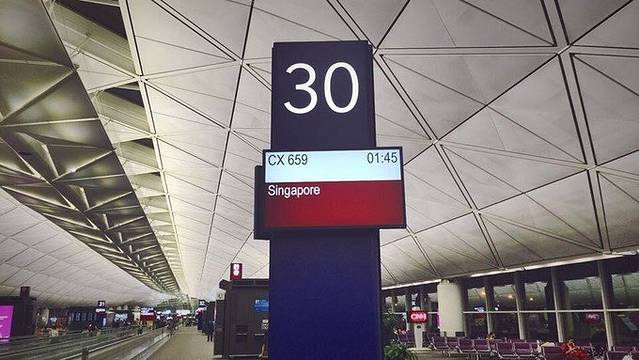 从蛇口港出发前往香港机场的,必须出示护照、签证、机票的电子行程单才可以出境, 港口大厅有几家航空公司的行李可以提前办理托运直挂,大致记得有香港港龙航空、国泰航空和日本航空。 我买的机票正好是国泰班机,所以提前托运行李的时候跟工作人员确认了两次,行李直接是直接托运到新加坡樟宜国际机场,不用抵港后下船排队取行李、然后再到机场值机柜台托运。