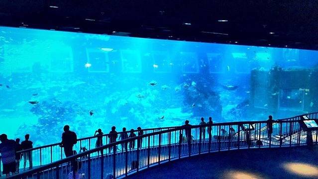 世界最大海洋观景窗,名不虚传!坐在前面看着巨大的鬼蝠魟从面前游过,真的是太震撼了。观景池宽36米、高8.3米、厚70公分的全球最大水族观景窗,沉醉在一片蔚蓝之中。