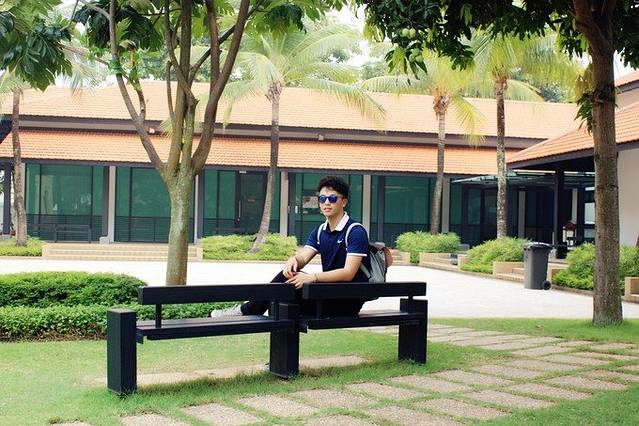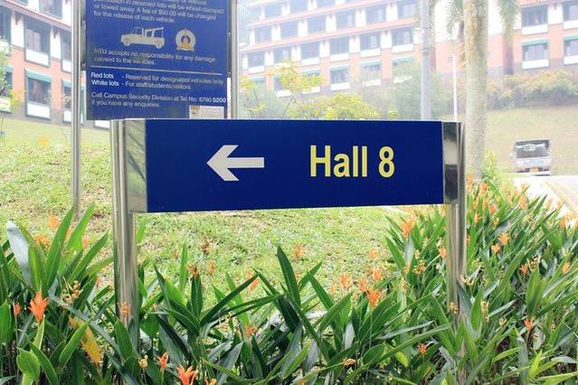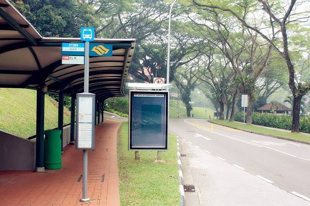 从Bugis地铁站坐1号线可以直达pioneer(先驱), 网上说出了地铁站下高架桥,有南大的免费校车可以直达校园。 我跌跌撞撞出了地铁站完全找不到方向,用英语询问几个路人甲,要么是指错路,要么回答不知道。 凭直觉穿过一条马路,看到一群年轻人,就上前询问,被告知前面公交站牌停靠的那辆大巴就是校车。于是我一路小跑,终于赶在车门关闭前气喘吁吁冲上了车...
