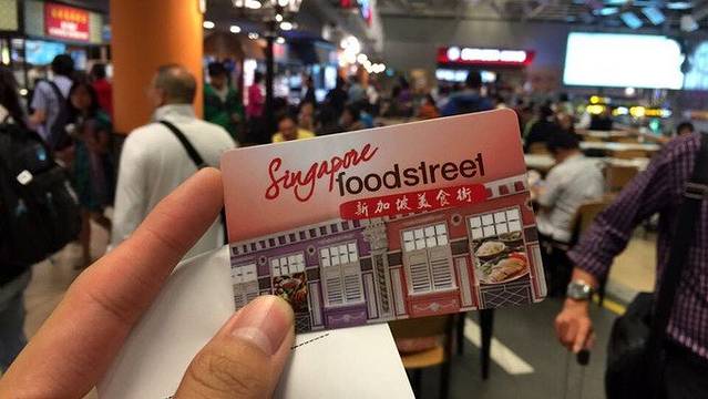 在机场发现一家美食城, 用16新币换了一张卡。 进去之后有很多店铺的美食可供选择...只能刷卡,不收现金。 就餐后,卡上剩余的钱可以退...
