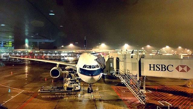 我的航班是国泰航空的CX650, 国泰值机柜台就在T1航站楼的入口。 工作人员可以说中文,服务态度很好,有问必答。 想着马上快要离开了, 回头看一眼机场外景,心里竟有了不舍...