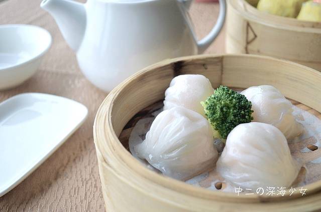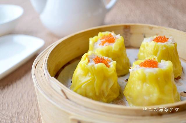 推荐茶点:蟹籽烧麦皇,橙黄的外皮包裹着多汁的内馅,一口一个趁热吃,味道好极啦!