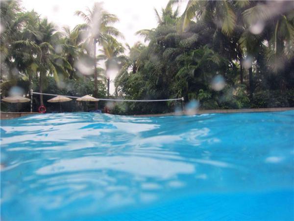 中午开始大雨下个不停,就在酒店泳池玩了一下午水上排球和篮球