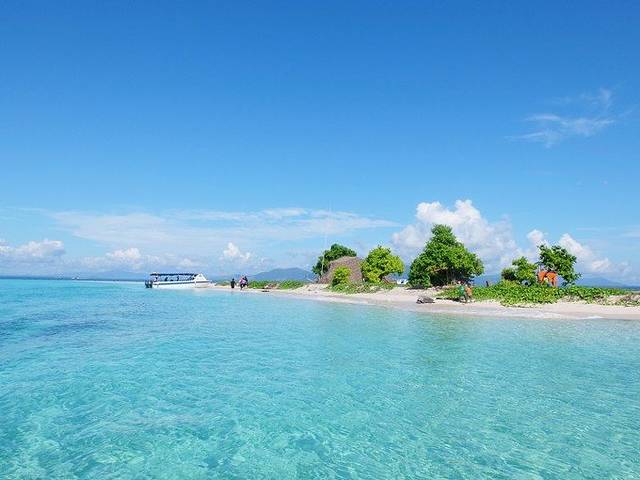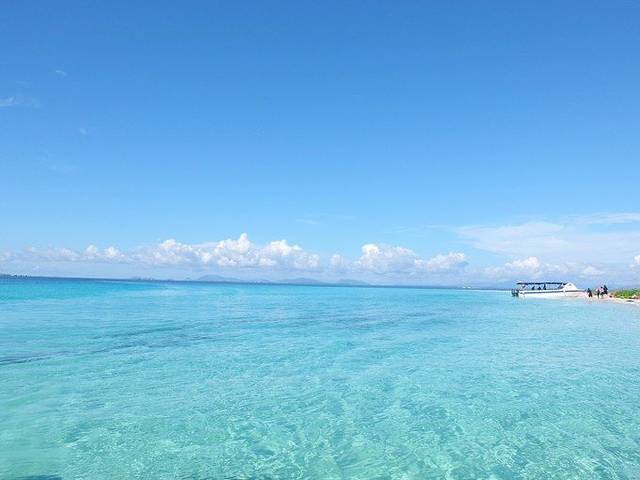 虽然之前做足了功课,知道它水清沙幼,椰林婆娑。但是看到它的瞬间还是不淡定了。细长的长尾沙滩延伸进海里,平静的海面像果冻一样剔透,由浅入深的渐变,最后和天空融化在一起。高耸入天的椰树。内心的小人在尖叫:“怎么那么美!” 每天午休时,只要坐在船边看着这片海,看着这片小小的冲击滩,就觉得很平静。凡尘俗事,没什么大不了。