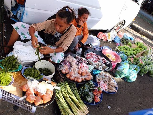 东南亚的菜市有一个共同的特征,地面很脏,但是菜都鲜亮,所有蔬菜看起来都是水汪汪的,葱姜蒜之类会蒙上泥土的菜也被清理的很干净,两三个一包。各种色彩饱和度很高的辣椒、香料,看着更像是装饰品。